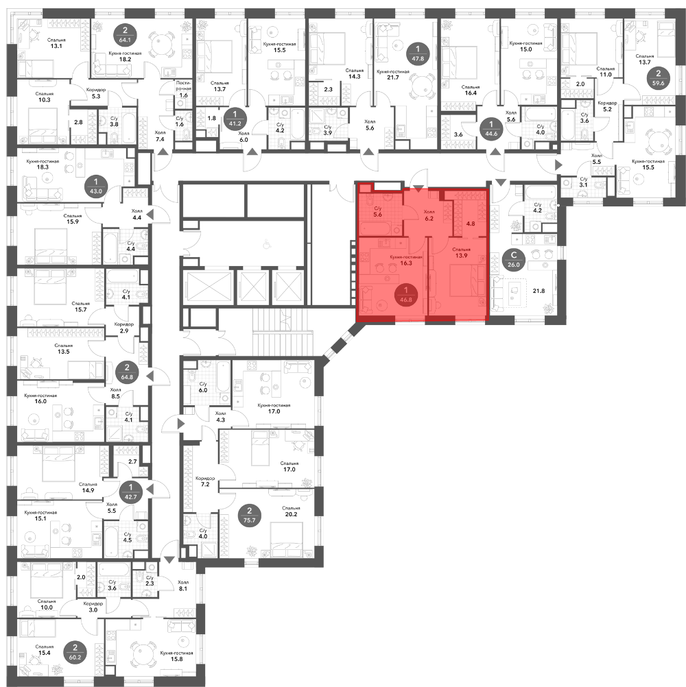 34 350 990 ₽1-к.квартира, 45.3 м², 24 эт.