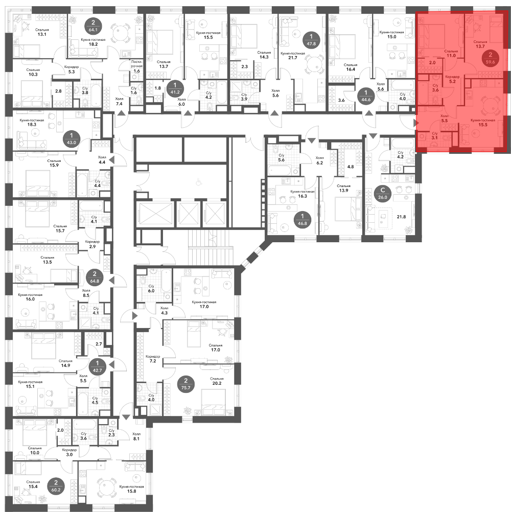 Квартир в ЖК: 96