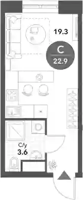 20 150 466 ₽Студия, 24.8 м², 19 эт.