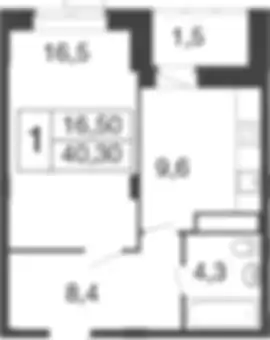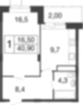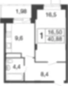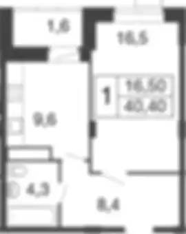 7 341 414 ₽1-к.квартира, 40.44 м², 1 эт.