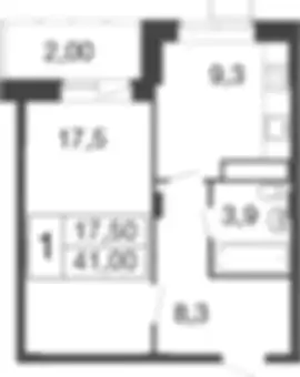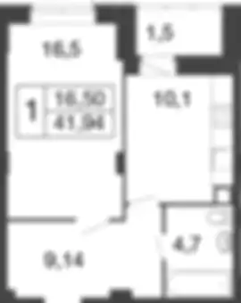 8 415 634 ₽1-к.квартира, 42.29 м², 1 эт.