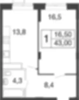 8 587 839 ₽1-к.квартира, 42.31 м², 1 эт.