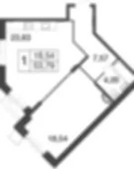 9 254 314 ₽1-к.квартира, 53.68 м², 1 эт.