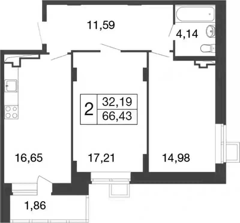 11 359 772 ₽2-к.квартира, 62.16 м², 2 эт.