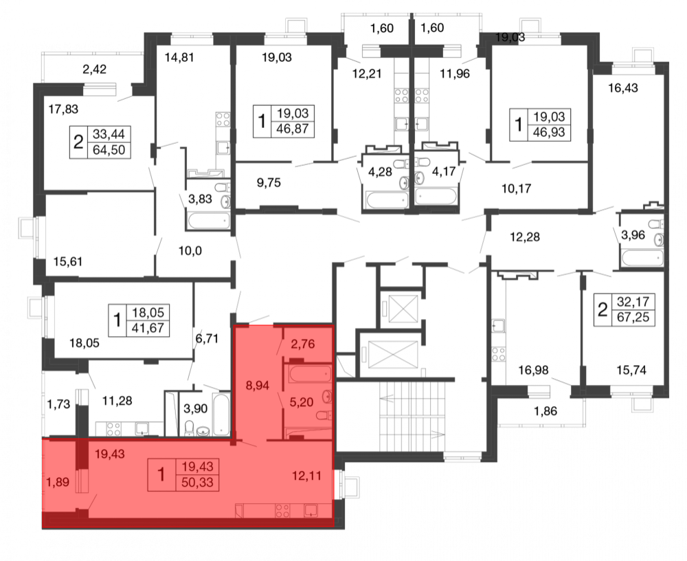 8 084 414 ₽1-к.квартира, 45.33 м², 1 эт.