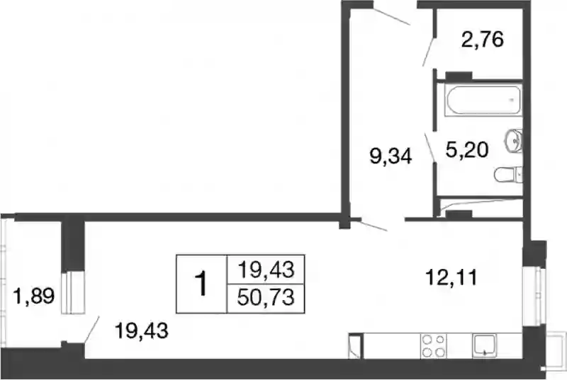 7 489 141 ₽1-к.квартира, 45.16 м², 4 эт.
