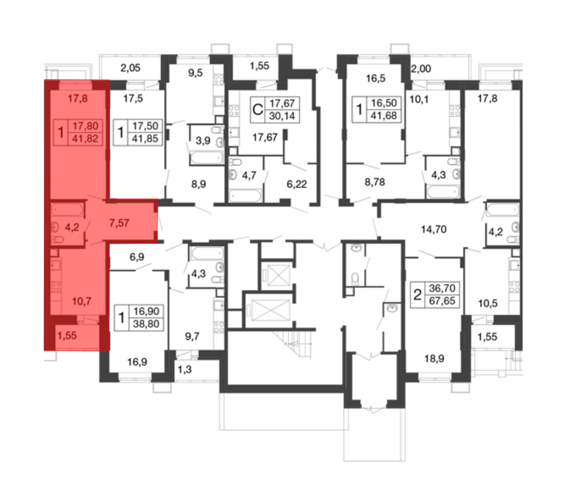 7 871 581 ₽1-к.квартира, 42.29 м², 1 эт.