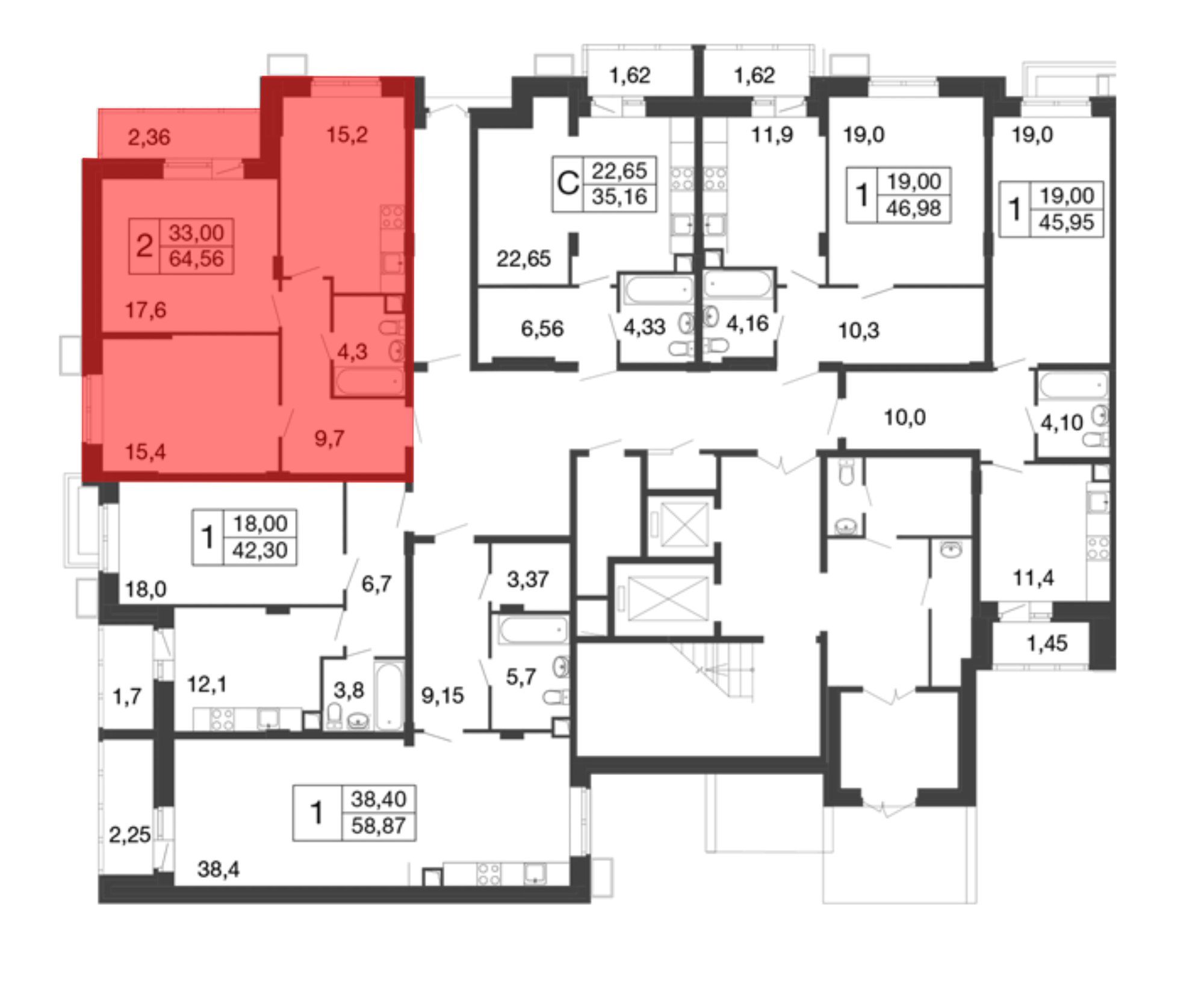 2-к.квартира, 62.2 м², 1 эт. в ЖК Времена года Корпус 2