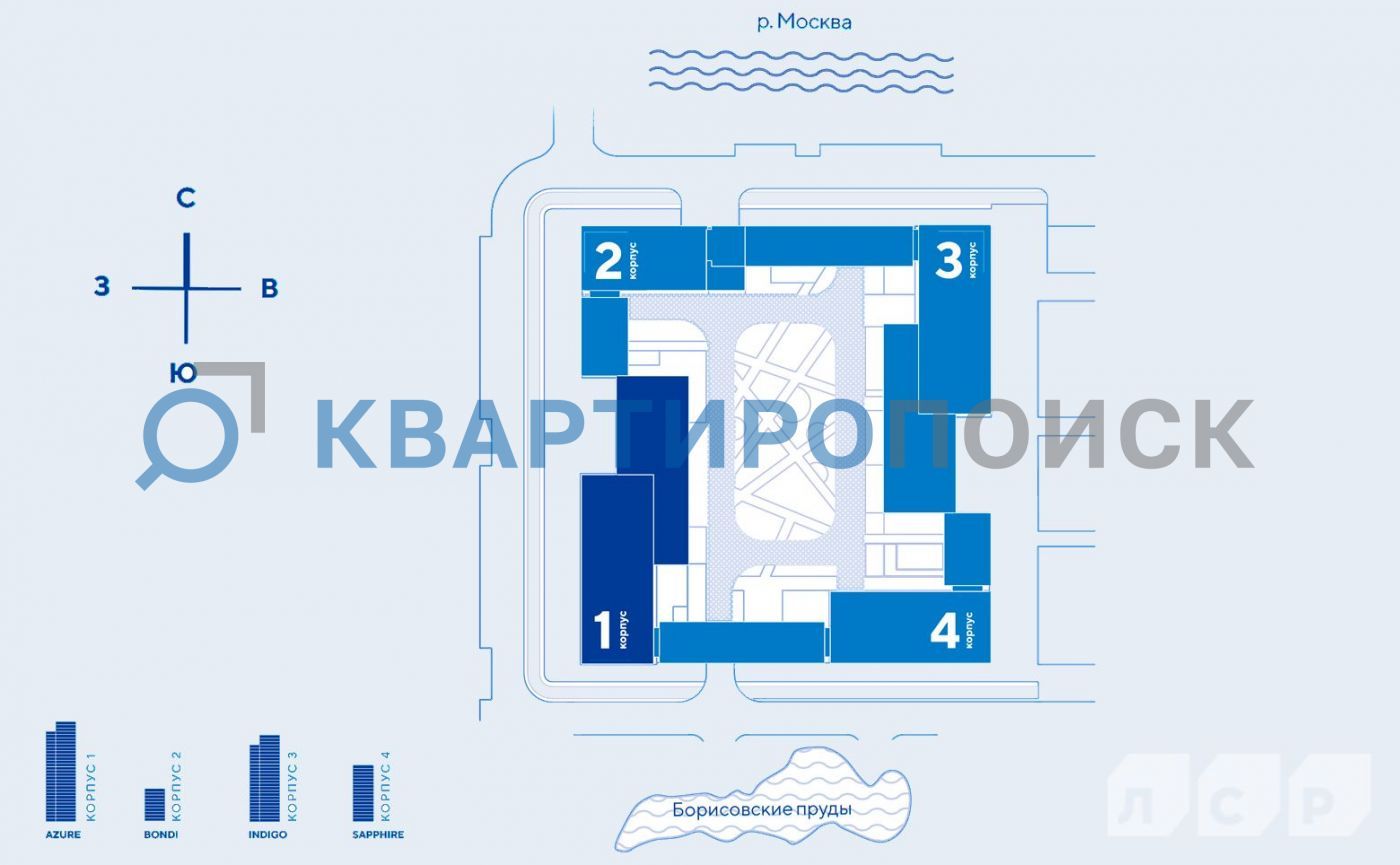 Жилой квартал состоит из 3 урбан-блоков, каждый из которых выполнен в своей стилистической концепции. В первом урбан-блоке предусмотрено 3 жилых корпуса переменной этажности: 18, 45 и 59 этажей. Они объединены стилобатом, в котором размещены инфраструктурные объекты. Архитектурный проект комплекса принадлежит знаменитому бюро СПИЧ. В основу архитектурного решения комплекса положен образ современного небоскреба. Эффектная геометрия подчеркивается за счет ступенчатых объемов башен, на которых организованы террасы, а на верхних этажах находятся общедоступные смотровые площадки. В просторных светлых лобби создана гостеприимная атмосфера первоклассного отеля. В лобби предусмотрены зоны ресепшен с дежурным консьержем, библиотека, комната для проведения мероприятий, переговорные, лапомойки, колясочные, санузлы и постамат.