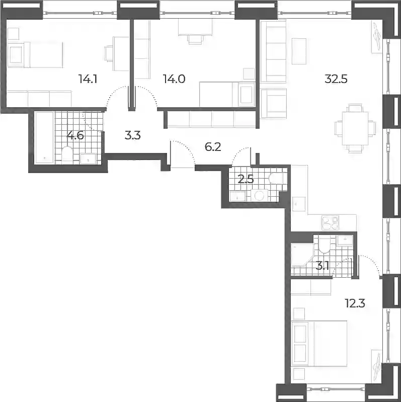 32 606 581 ₽3-к.квартира, 83.58 м², 13 эт.