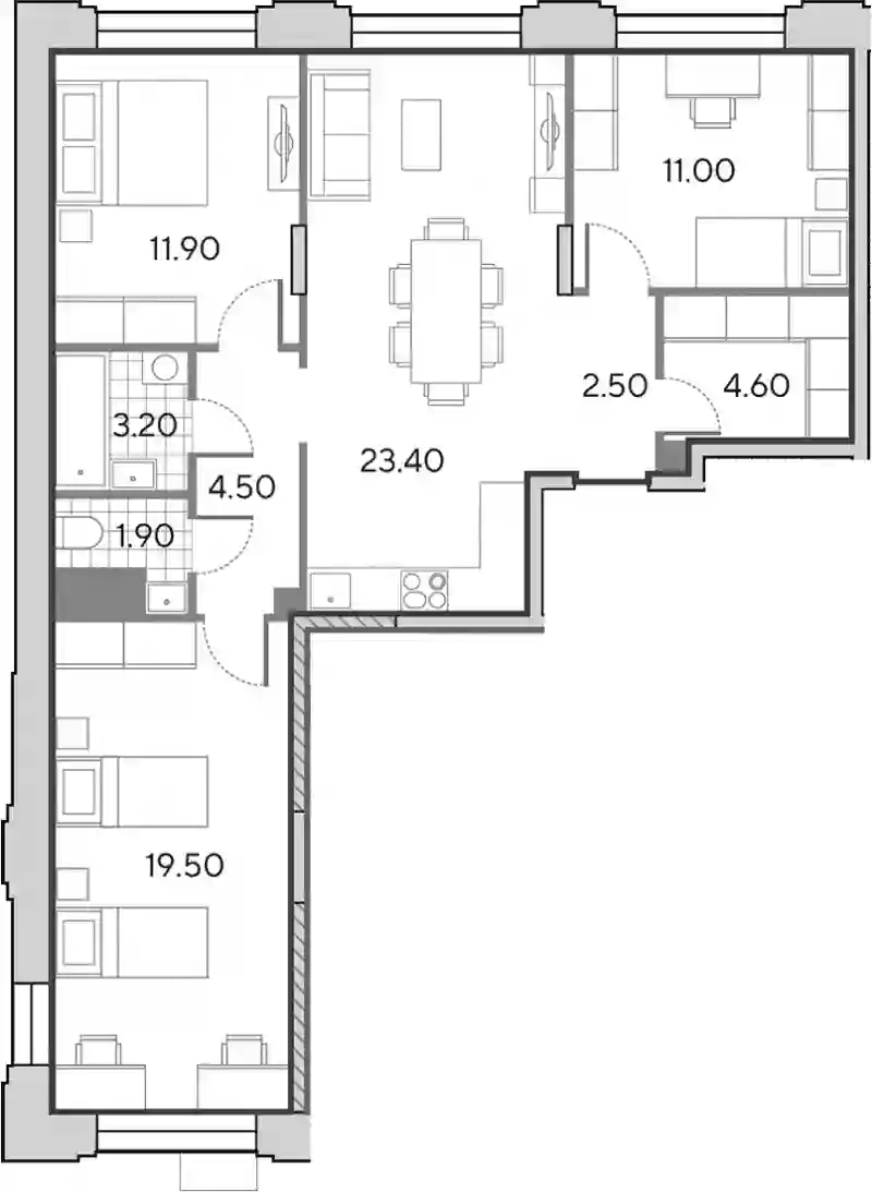 30 609 161 ₽4-к.квартира, 84.3 м², 3 эт.