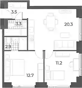 20 674 541 ₽3-к.квартира, 58.12 м², 2 эт.