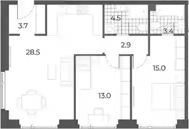 29 375 617 ₽3-к.квартира, 72.79 м², 2 эт.
