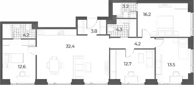 5+к.квартира, 107.1 м², 30 эт. в ЖК Wave Корпус 3 (Indigo)
