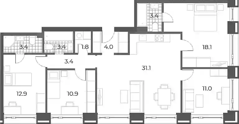 В комплексе «Дмитровское небо»предложено множество планировочных решений: в наличии квартиры, как классического типа, так и европланировки. Сдаются они без стен, высотой потолков 2,7 метра и увеличенными окнами.