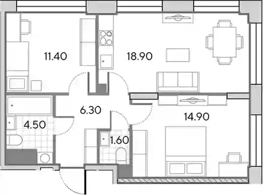 18 809 509 ₽2-к.квартира, 53.4 м², 15 эт.
