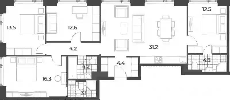 В комплексе «Дмитровское небо»предложено множество планировочных решений: в наличии квартиры, как классического типа, так и европланировки. Сдаются они без стен, высотой потолков 2,7 метра и увеличенными окнами.