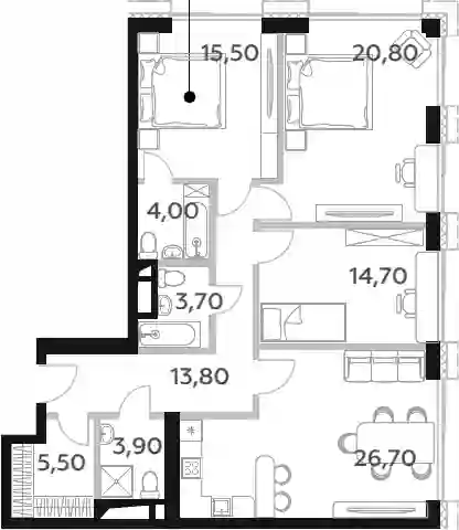 4-к.квартира, 108.6 м², 36 эт. в ЖК Will Towers Корпус 1 - Creativity