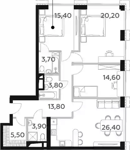 4-к.квартира, 110.9 м², 25 эт. в ЖК Will Towers Корпус 1 - Creativity
