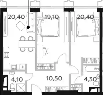 3-к.квартира, 78.8 м², 43 эт. в ЖК Will Towers Корпус 2 - Energy