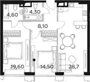 3-к.квартира, 79.8 м², 35 эт. в ЖК Will Towers Корпус 2 - Energy