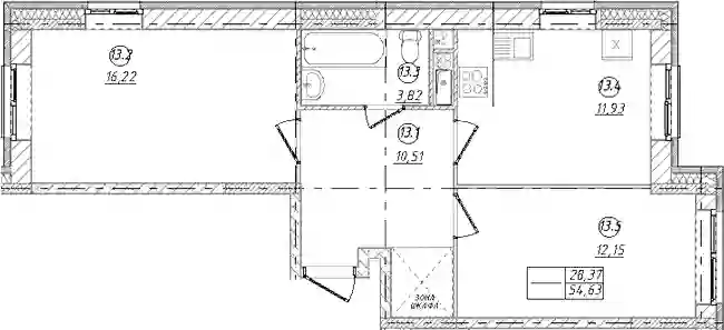В проекте предлагаются квартиры с 1–4 комнатами. Во всех лотах предусмотрены стандартные окна, в части квартир открываются виды на лес. Высота потолков составляет 2,95 м. Базовый формат передачи — без стен: бетонные стены без возведения межкомнатных перегородок с трассировкой, электричество заведено без разводки и подключения. Дополнительно доступны варианты отделки подчистовая White box и чистовая под ключ.