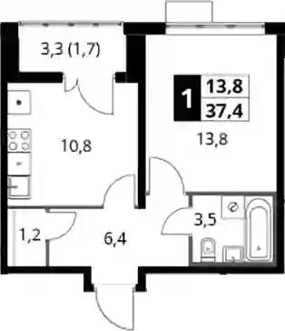 1-к.квартира, 35.7 м², 3 эт. в ЖК Южная Битца Корпус 10