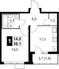 1-к.квартира, 36.2 м², 11 эт. в ЖК Южная Битца Корпус 10