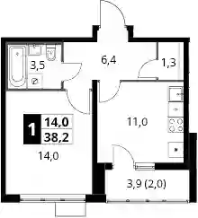 13 129 920 ₽1-к.квартира, 35.8 м², 4 эт.