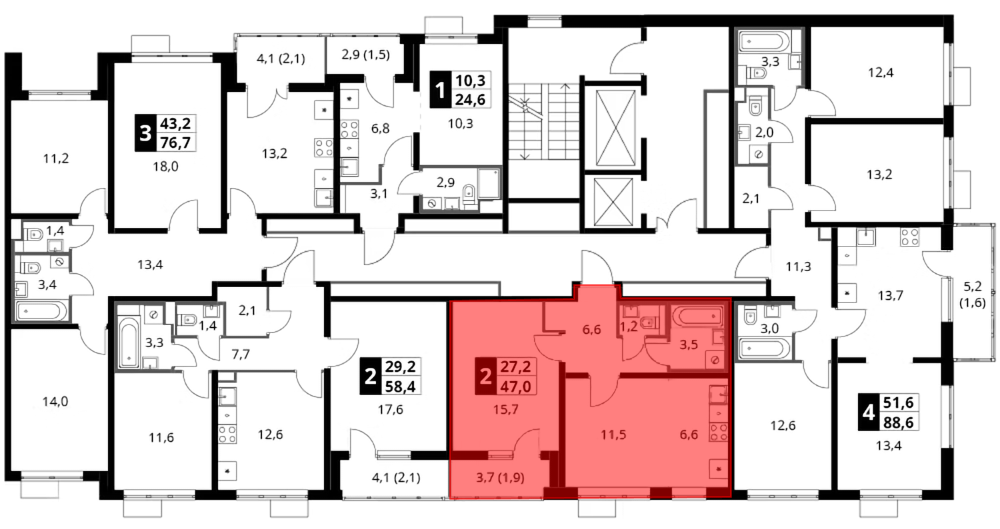 13 312 927 ₽2-к.квартира, 46.7 м², 17 эт.