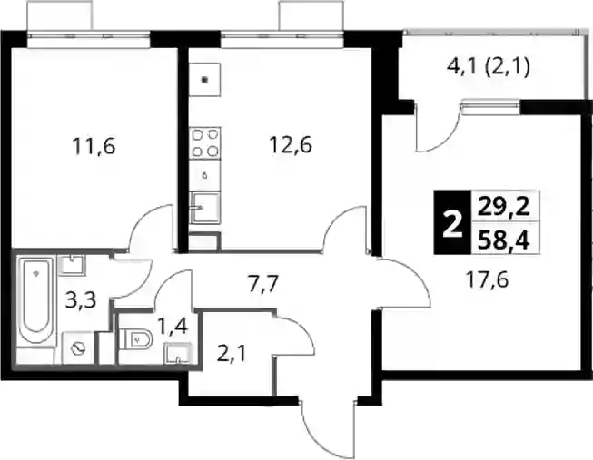 2-к.квартира, 56.3 м², 3 эт. в ЖК Южная Битца Корпус 10