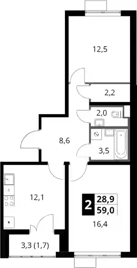 2-к.квартира, 57.3 м², 7 эт. в ЖК Южная Битца Корпус 10