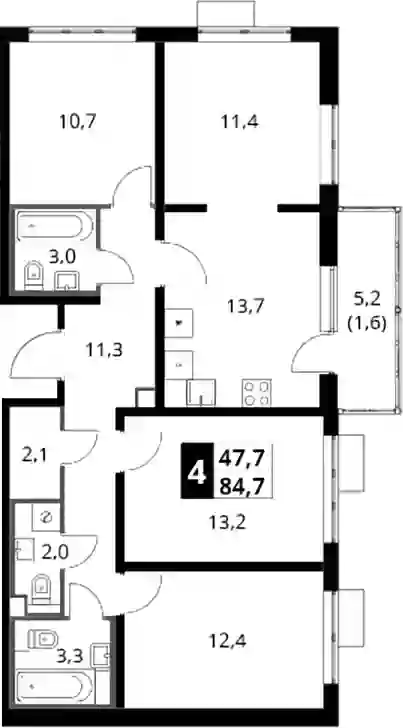 4-к.квартира, 83.1 м², 6 эт. в ЖК Южная Битца Корпус 10