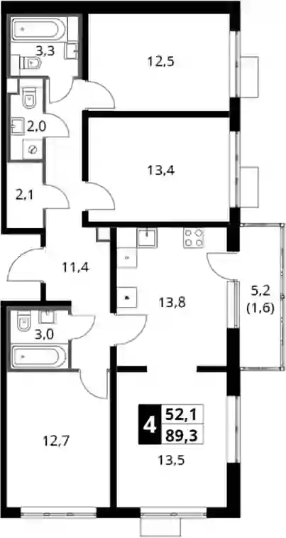 4-к.квартира, 87.7 м², 12 эт. в ЖК Южная Битца Корпус 10