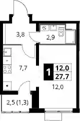 Студия, 26.4 м², 19 эт. в ЖК Южная Битца Корпус 10