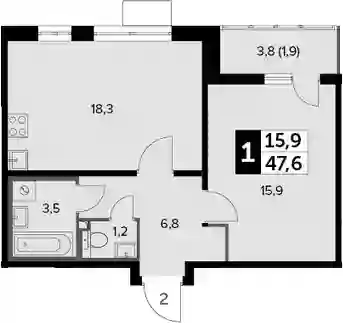 2-к.квартира, 46.7 м², 17 эт. в ЖК Южная Битца Корпус 12