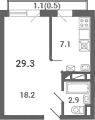 1-к.квартира, 28.2 м², 1 эт. в ЖК Южная Долина Корпус 22