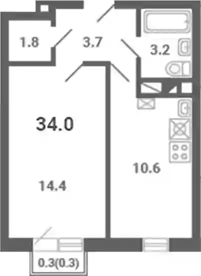 1-к.квартира, 33.7 м², 2 эт. в ЖК Южная Долина Корпус 23