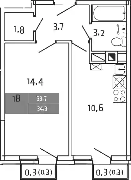 1-к.квартира, 33.7 м², 3 эт. в ЖК Южная Долина Корпус 25