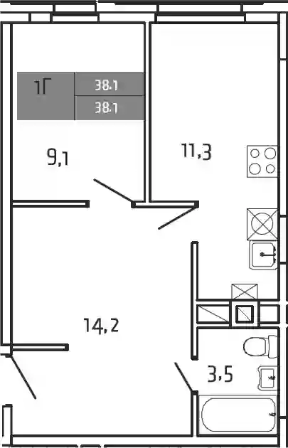 1-к.квартира, 38.1 м², 1 эт. в ЖК Южная Долина Корпус 25