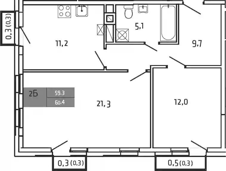 2-к.квартира, 59.3 м², 2 эт. в ЖК Южная Долина Корпус 25
