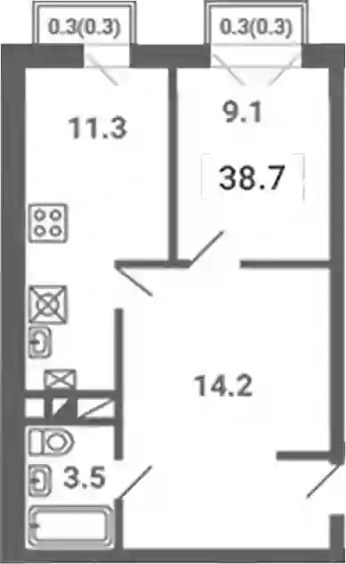 6 723 000 ₽1-к.квартира, 38.1 м², 1 эт.