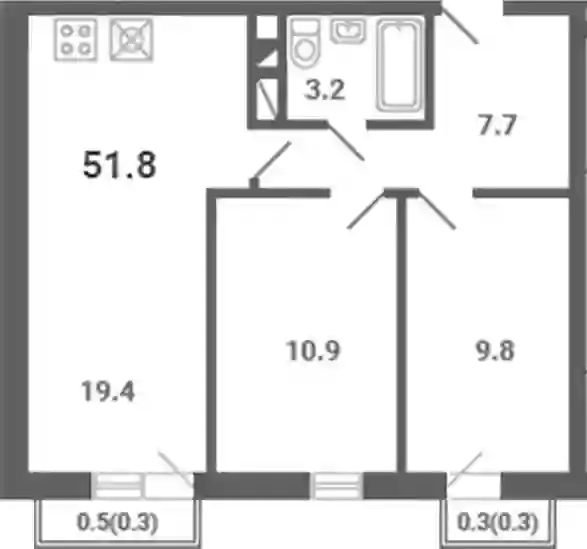 7 852 000 ₽2-к.квартира, 51 м², 3 эт.