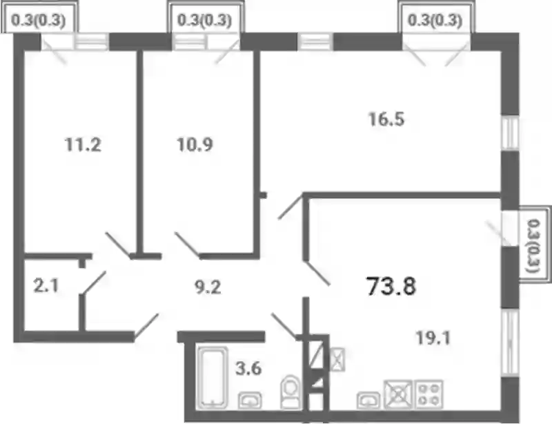 10 743 000 ₽3-к.квартира, 72.6 м², 3 эт.