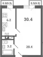 4 126 000 ₽1-к.квартира, 29.8 м², 1 эт.