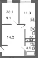5 662 000 ₽2-к.квартира, 38.1 м², 1 эт.