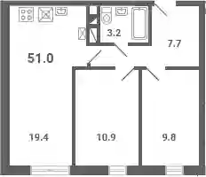 7 712 000 ₽2-к.квартира, 51 м², 4 эт.