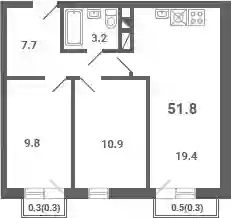 7 388 000 ₽2-к.квартира, 51 м², 4 эт.