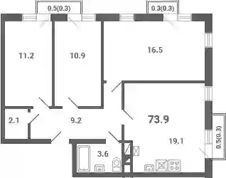 9 411 000 ₽3-к.квартира, 72.6 м², 3 эт.