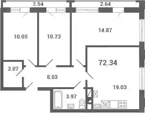 В реализации 3 очередь строительства корпусов с квартирами площадью от 29,3 до 82 кв. метров. Квартиры сдаются с чистовой отделкой и отделкой White Box.